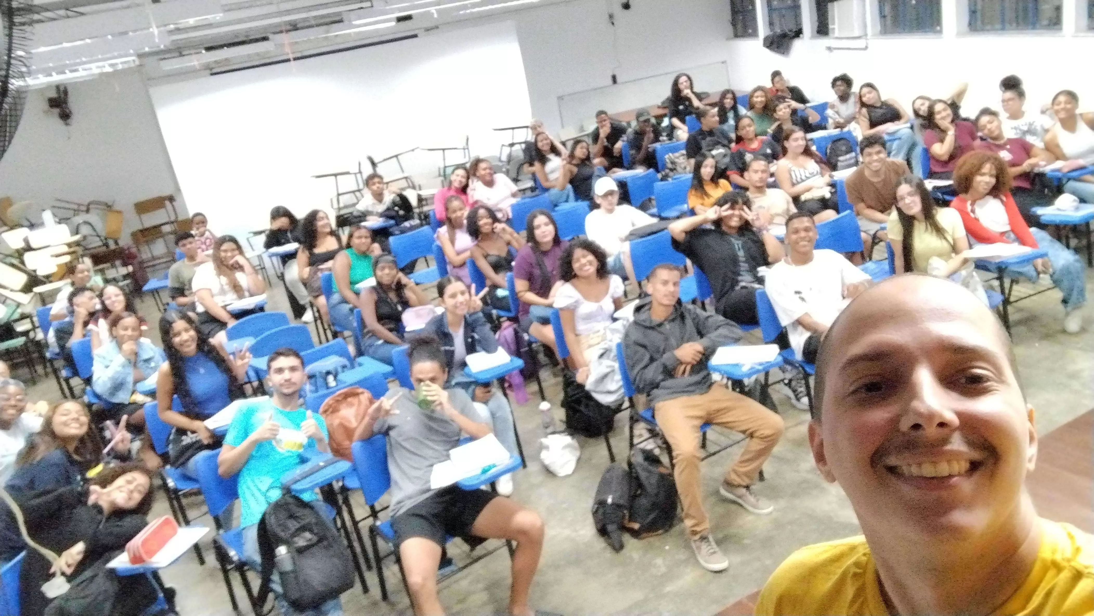 Eu já tenho experiência corrigindo redações em mais de 5 plataformas online, além de dar aulas de redação como bolsista no pré-vestibular lá da UFF Niterói, e essa é a foto de uma das minhas turmas.